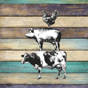 American Country Style,Vintage Wood Grain,Farm Animal,Cow,Pig,Chicken,Farm,Farmhouse,Country