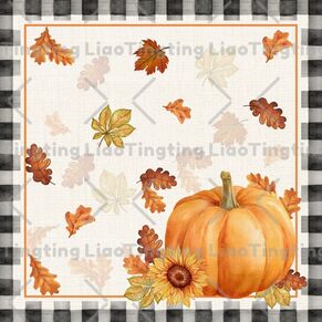 Thanksgiving,Autumn,Pumpkin,Maple Leaf,Oak Leaf,Sunflower,Black And White Plaid,Farm,Farmhouse,Vintage Linen Bottom