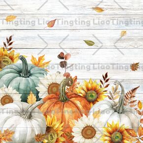 Thanksgiving,Autumn,Pumpkin,Leaves,Sunflower,Gray Wood Grain