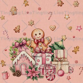 Christmas,Winter,Ginger-cake People,Snowflakes,Watercolors