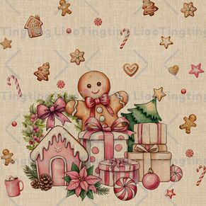 Christmas,Winter,Ginger-cake People,Snowflakes,Watercolors