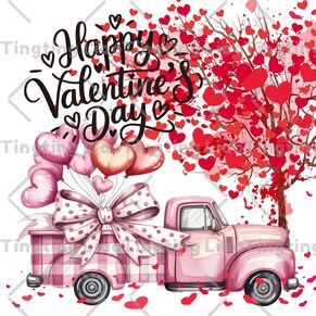 Valentine's Day,Lovers,Trucks,Balloons,Watercolor Style,Hand-drawn