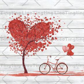 Valentine's Day,Pink,Love Trees,Bicycles,Balloons,White Wood Patterns