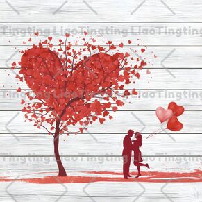 Valentine's Day,Pink,Love Trees,Bicycles,Balloons,Couples,White Wood Patterns