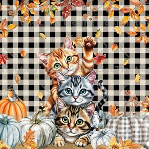 Thanksgiving,Autumn,Leaves,Pumpkin,Cat,Plaid
